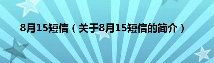 大家好,8月15短信,關于8月15短信的簡介很多人還不知道,現在讓我們一起來看看吧!