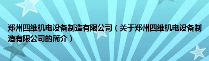 本文關(guān)于鄭州四維機(jī)電設(shè)備制造有限公司的簡介就講解完畢,希望對大家有所幫助。