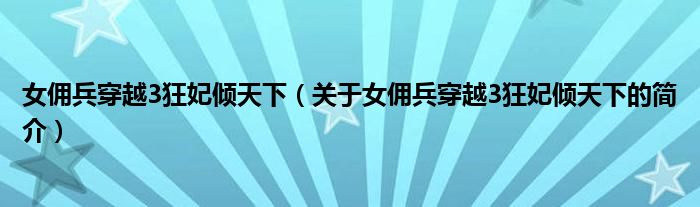 本文關于女傭兵穿越3狂妃傾天下的簡介就講解完畢,希望對大家有所幫助。