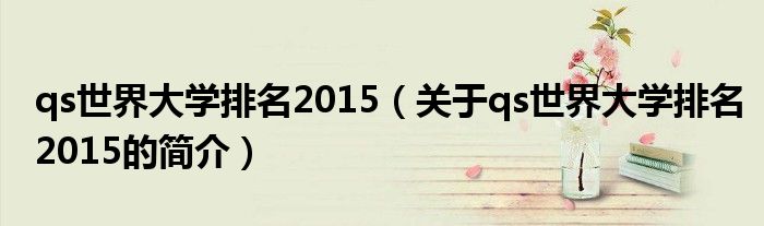本文關于qs世界大學排名2015的簡介就講解完畢,希望對大家有所幫助。