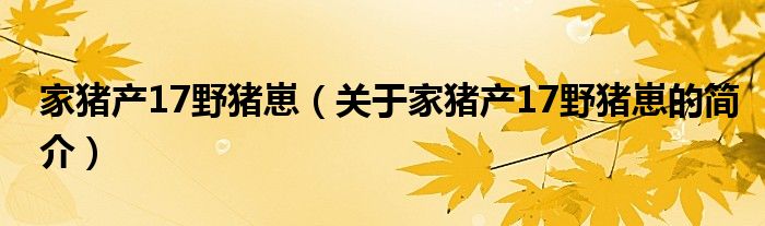 本文關(guān)于家豬產(chǎn)17野豬崽的簡介就講解完畢,希望對大家有所幫助。