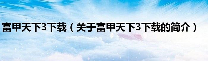 大家好,富甲天下3下載,關于富甲天下3下載的簡介很多人還不知道,現在讓我們一起來看看吧!