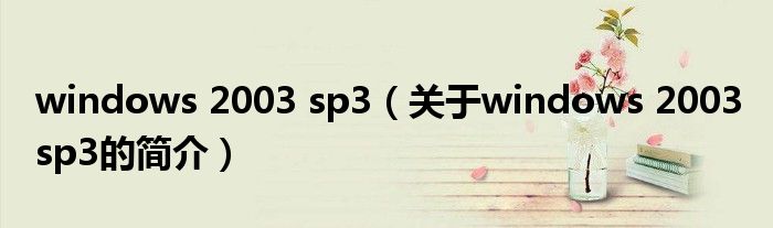 大家好,windows 2003 sp3,關(guān)于windows 2003 sp3的簡介很多人還不知道,現(xiàn)在讓我們一起來看看吧!