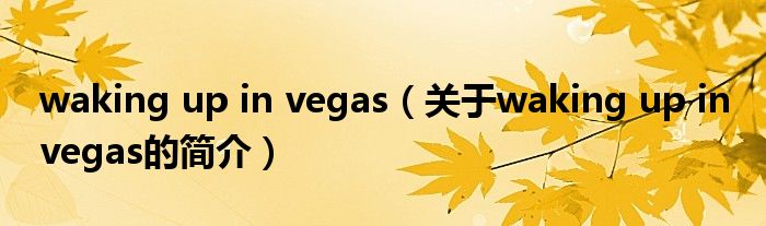 大家好,waking up in vegas,關(guān)于waking up in vegas的簡介很多人還不知道,現(xiàn)在讓我們一起來看看吧!