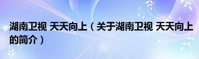 本文關于湖南衛視 天天向上的簡介就講解完畢,希望對大家有所幫助。