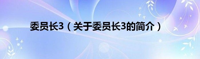 大家好,委員長3,關(guān)于委員長3的簡介很多人還不知道,現(xiàn)在讓我們一起來看看吧!