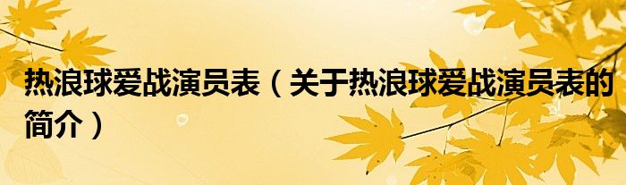 本文關于熱浪球愛戰演員表的簡介就講解完畢,希望對大家有所幫助。