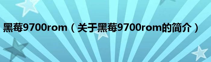 本文關于黑莓9700rom的簡介就講解完畢,希望對大家有所幫助。