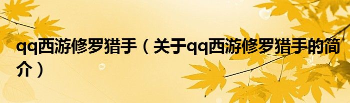 本文關(guān)于qq西游修羅獵手的簡介就講解完畢,希望對大家有所幫助。