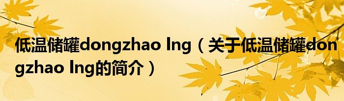 大家好,低溫儲罐dongzhao lng,關(guān)于低溫儲罐dongzhao lng的簡介很多人還不知道,現(xiàn)在讓我們一起來看看吧!