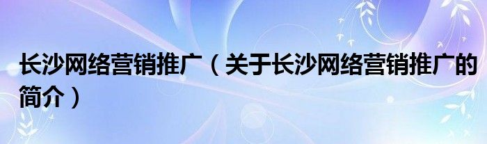本文關于長沙網絡營銷推廣的簡介就講解完畢,希望對大家有所幫助。