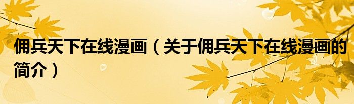 本文關于傭兵天下在線漫畫的簡介就講解完畢,希望對大家有所幫助。