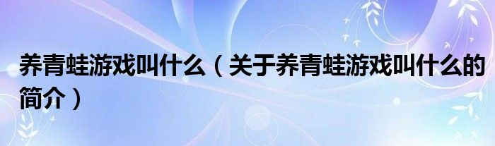 本文關(guān)于養(yǎng)青蛙游戲叫什么的簡(jiǎn)介就講解完畢,希望對(duì)大家有所幫助。