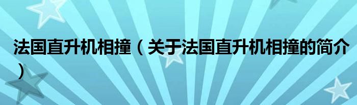 本文關于法國直升機相撞的簡介就講解完畢,希望對大家有所幫助。