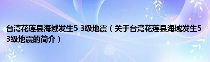 本文關于臺灣花蓮縣海域發生5 3級地震的簡介就講解完畢,希望對大家有所幫助。