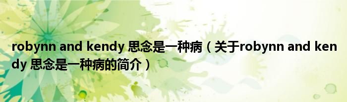 本文關于robynn and kendy 思念是一種病的簡介就講解完畢,希望對大家有所幫助。
