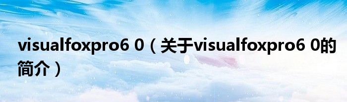 本文關于visualfoxpro6 0的簡介就講解完畢,希望對大家有所幫助。