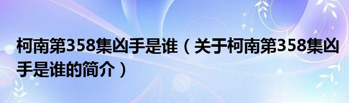 本文關于柯南第358集兇手是誰的簡介就講解完畢,希望對大家有所幫助。
