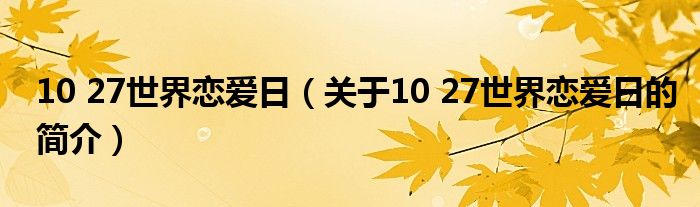 本文關(guān)于10 27世界戀愛(ài)日的簡(jiǎn)介就講解完畢,希望對(duì)大家有所幫助。