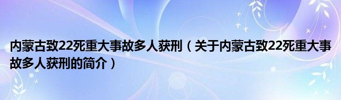 本文關于內蒙古致22死重大事故多人獲刑的簡介就講解完畢,希望對大家有所幫助。