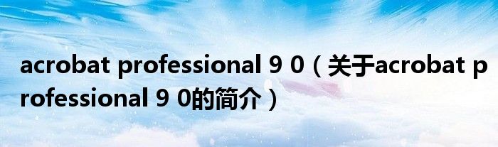 大家好,acrobat professional 9 0,關(guān)于acrobat professional 9 0的簡介很多人還不知道,現(xiàn)在讓我們一起來看看吧!