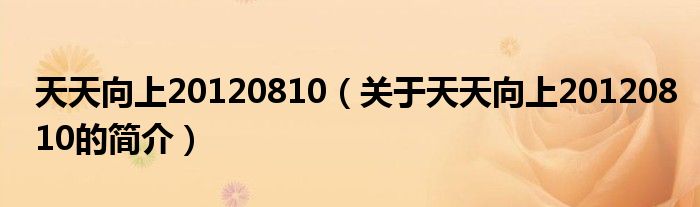 大家好,天天向上20120810,關于天天向上20120810的簡介很多人還不知道,現在讓我們一起來看看吧!