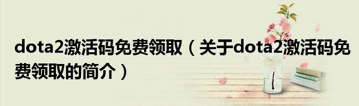 本文關于dota2激活碼免費領取的簡介就講解完畢,希望對大家有所幫助。