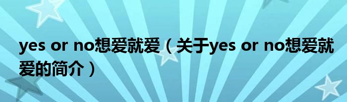 本文關于yes or no想愛就愛的簡介就講解完畢,希望對大家有所幫助。