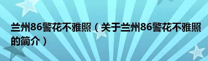 本文關于蘭州86警花不雅照的簡介就講解完畢,希望對大家有所幫助。