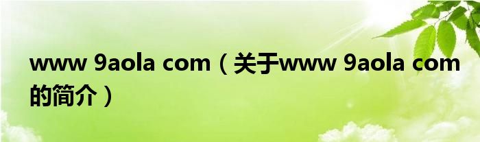 本文關于www 9aola com的簡介就講解完畢,希望對大家有所幫助。