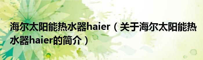 本文關于海爾太陽能熱水器haier的簡介就講解完畢,希望對大家有所幫助。