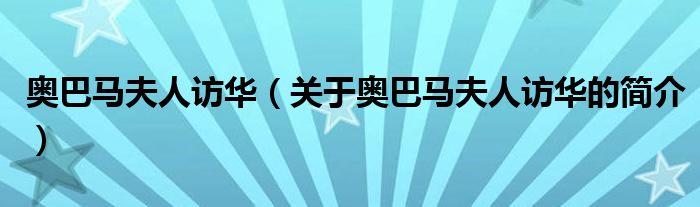 大家好,奧巴馬夫人訪華,關于奧巴馬夫人訪華的簡介很多人還不知道,現在讓我們一起來看看吧!