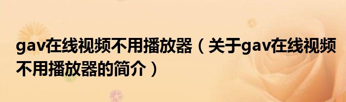 本文關(guān)于gav在線視頻不用播放器的簡介就講解完畢,希望對大家有所幫助。