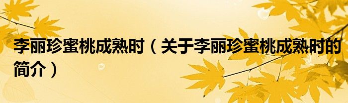 本文關于李麗珍蜜桃成熟時的簡介就講解完畢,希望對大家有所幫助。