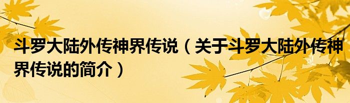 本文關于斗羅大陸外傳神界傳說的簡介就講解完畢,希望對大家有所幫助。
