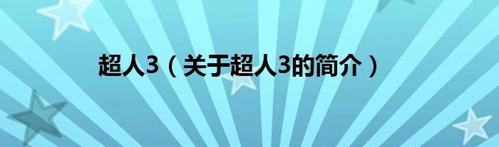 本文關于超人3的簡介就講解完畢,希望對大家有所幫助。