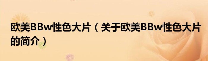 大家好,歐美BBw性色大片,關(guān)于歐美BBw性色大片的簡介很多人還不知道,現(xiàn)在讓我們一起來看看吧!