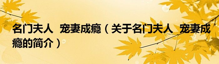 本文關于名門夫人 寵妻成癮的簡介就講解完畢,希望對大家有所幫助。