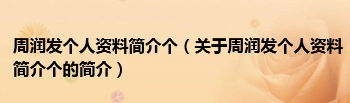 大家好,周潤發個人資料簡介個,關于周潤發個人資料簡介個的簡介很多人還不知道,現在讓我們一起來看看吧!