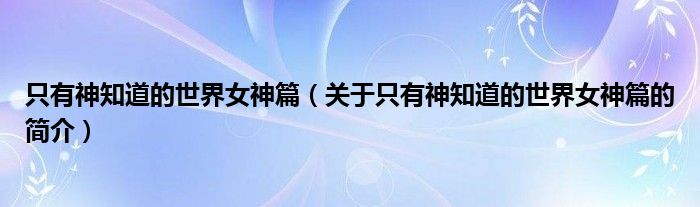 本文關(guān)于只有神知道的世界女神篇的簡(jiǎn)介就講解完畢,希望對(duì)大家有所幫助。