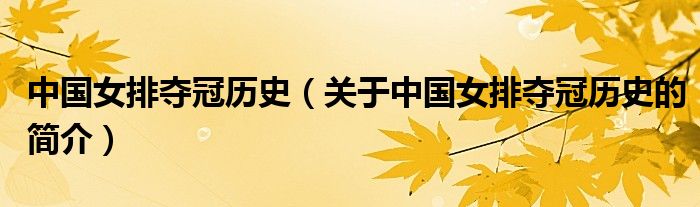 本文關于中國女排奪冠歷史的簡介就講解完畢,希望對大家有所幫助。