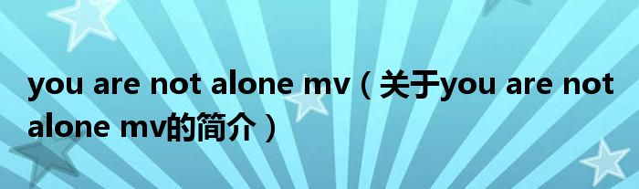 大家好,you are not alone mv,關(guān)于you are not alone mv的簡介很多人還不知道,現(xiàn)在讓我們一起來看看吧!