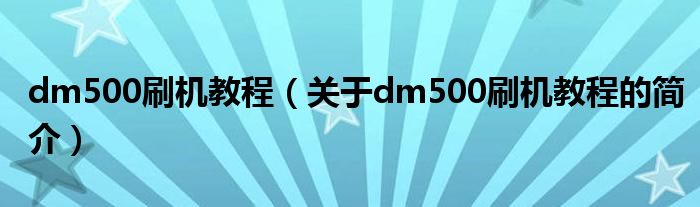 大家好,dm500刷機教程,關于dm500刷機教程的簡介很多人還不知道,現在讓我們一起來看看吧!