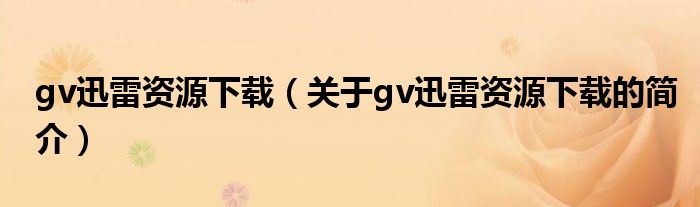 本文關于gv迅雷資源下載的簡介就講解完畢,希望對大家有所幫助。