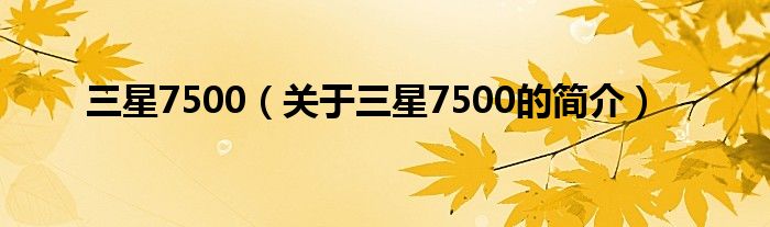 大家好,三星7500,關于三星7500的簡介很多人還不知道,現在讓我們一起來看看吧!