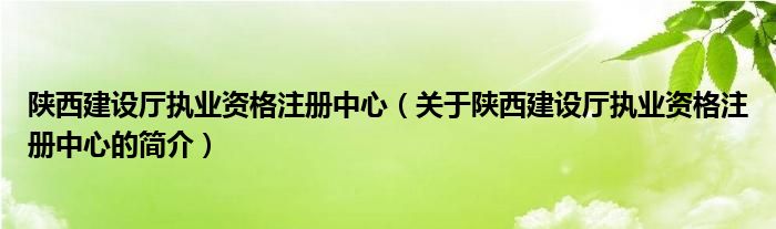 本文關于陜西建設廳執業資格注冊中心的簡介就講解完畢,希望對大家有所幫助。