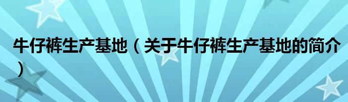 本文關(guān)于牛仔褲生產(chǎn)基地的簡介就講解完畢,希望對大家有所幫助。