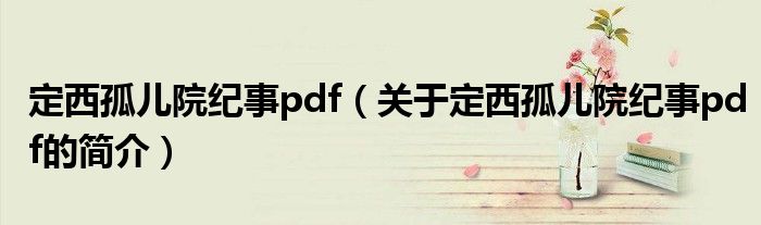 大家好,定西孤兒院紀事pdf,關于定西孤兒院紀事pdf的簡介很多人還不知道,現在讓我們一起來看看吧!