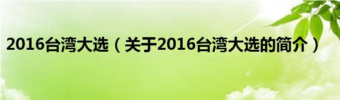 大家好,2016臺灣大選,關于2016臺灣大選的簡介很多人還不知道,現在讓我們一起來看看吧!