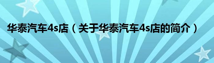 大家好,華泰汽車4s店,關于華泰汽車4s店的簡介很多人還不知道,現在讓我們一起來看看吧!